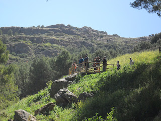Por este carril avanzaremos hasta el Área Recreativa de la Fuensanta, donde existen merenderos, barbacoas, y un Cortijo que antiguamente era un Convento. Después continuaremos por sendero balizado por la gran Senda de Málaga donde giraremos a la izquierda para recorrer el Barranco de bautista.